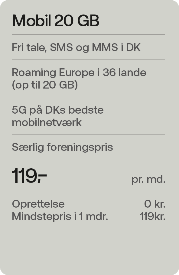 Oplev Danmarks bedste 5G-dækning og de hurtigste hastigheder med et mobilabonnement fra kun 119 kr./md. For at få 5G-oplevelsen, skal du have en 5G-mobiltelefon.